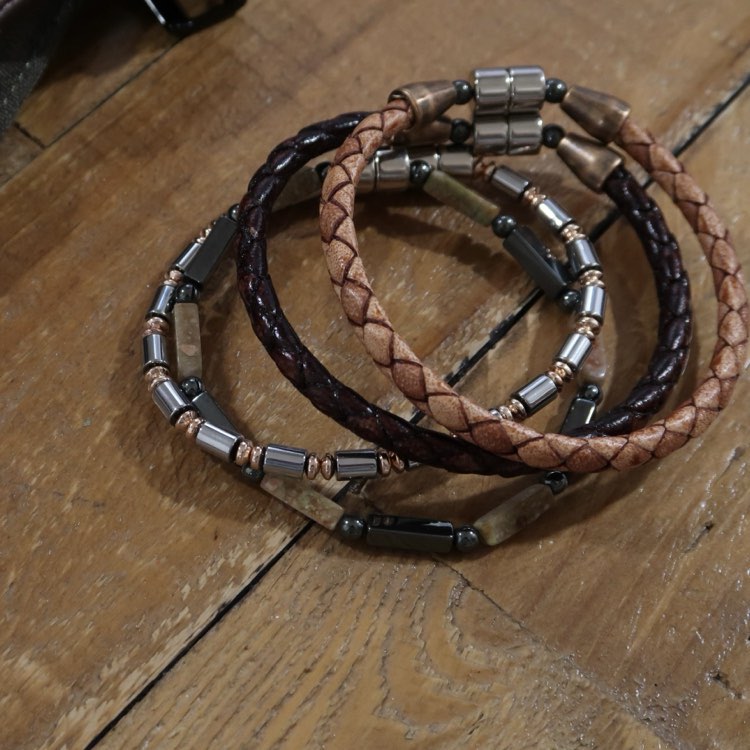 The round magnetic clasps on our Men's Single Strand designs may look smaller than the rectangular clasps on the Double Strands, but they are all the same strength Rare Earth magnets.
