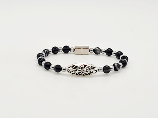 Striped Black Agate w Hematite Square