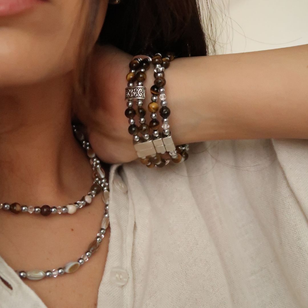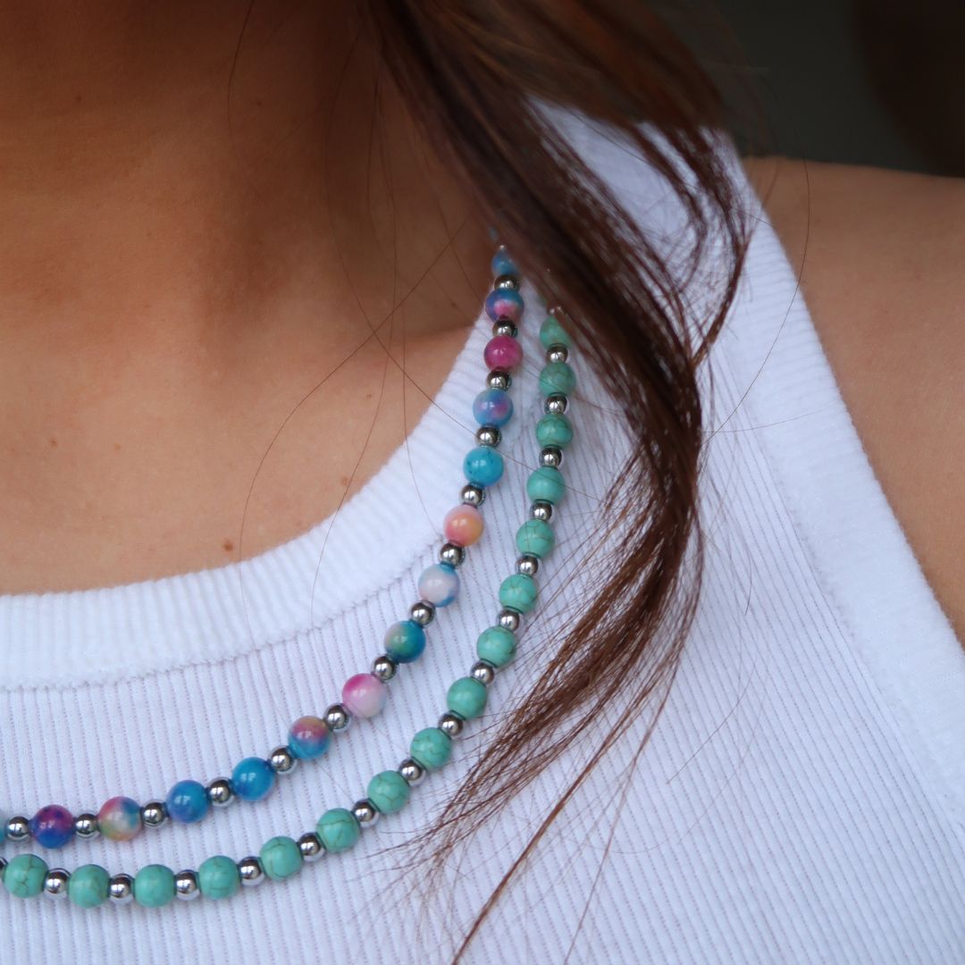 Our women's necklace collection is elegant and distinctive. Whether you choose to match your necklace to your bracelet or to simply coordinate colors, completing your outfit with a UMJ necklace will surely level up your style and uniqueness.