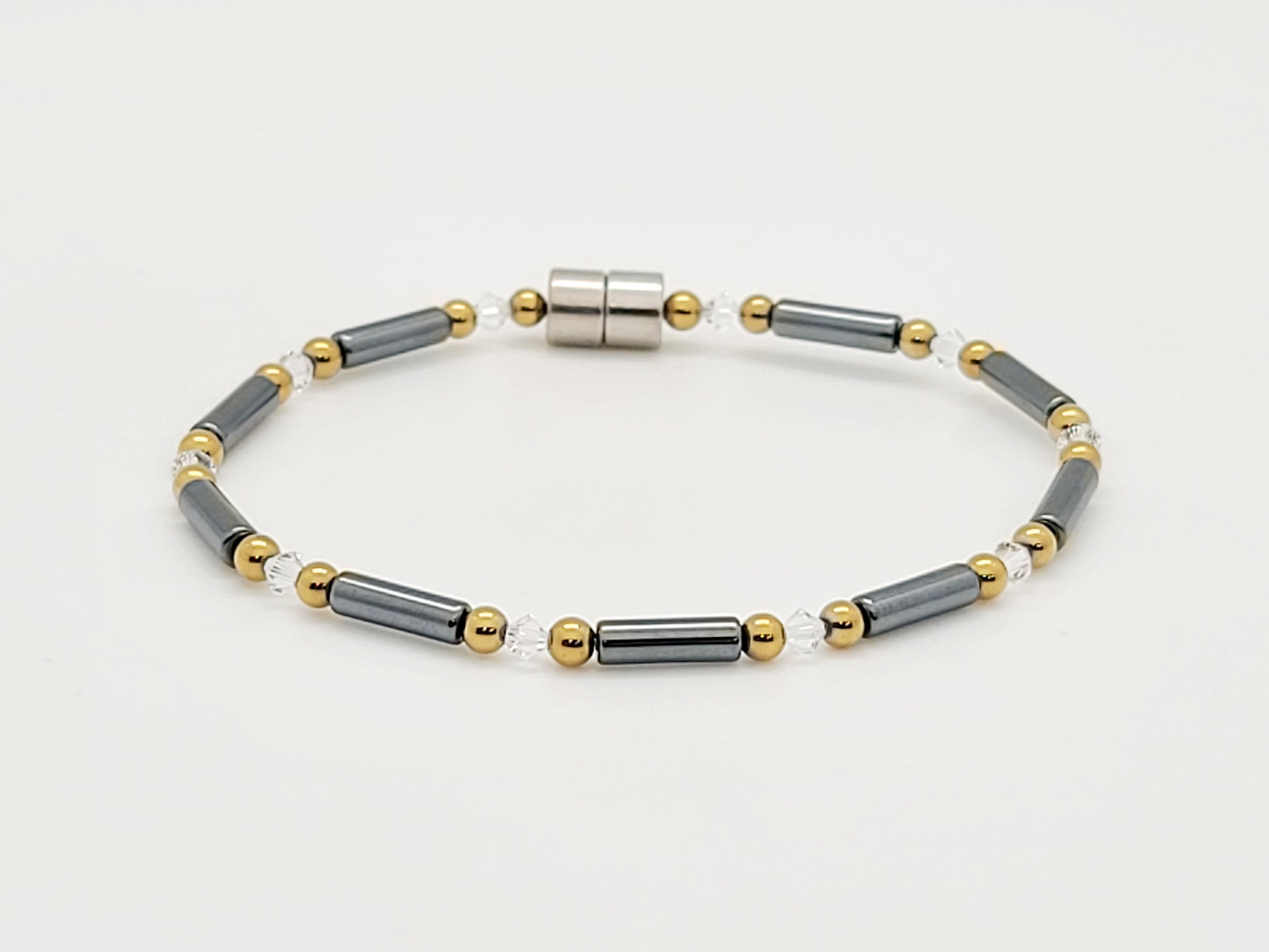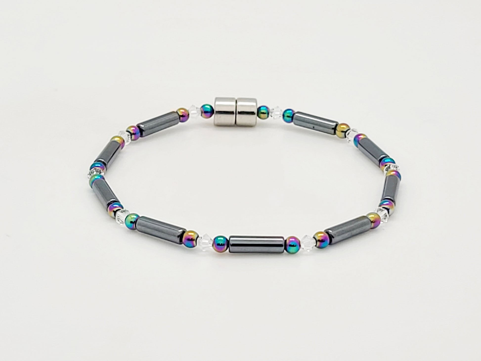 Black Hematite Tube w Clear Crystal