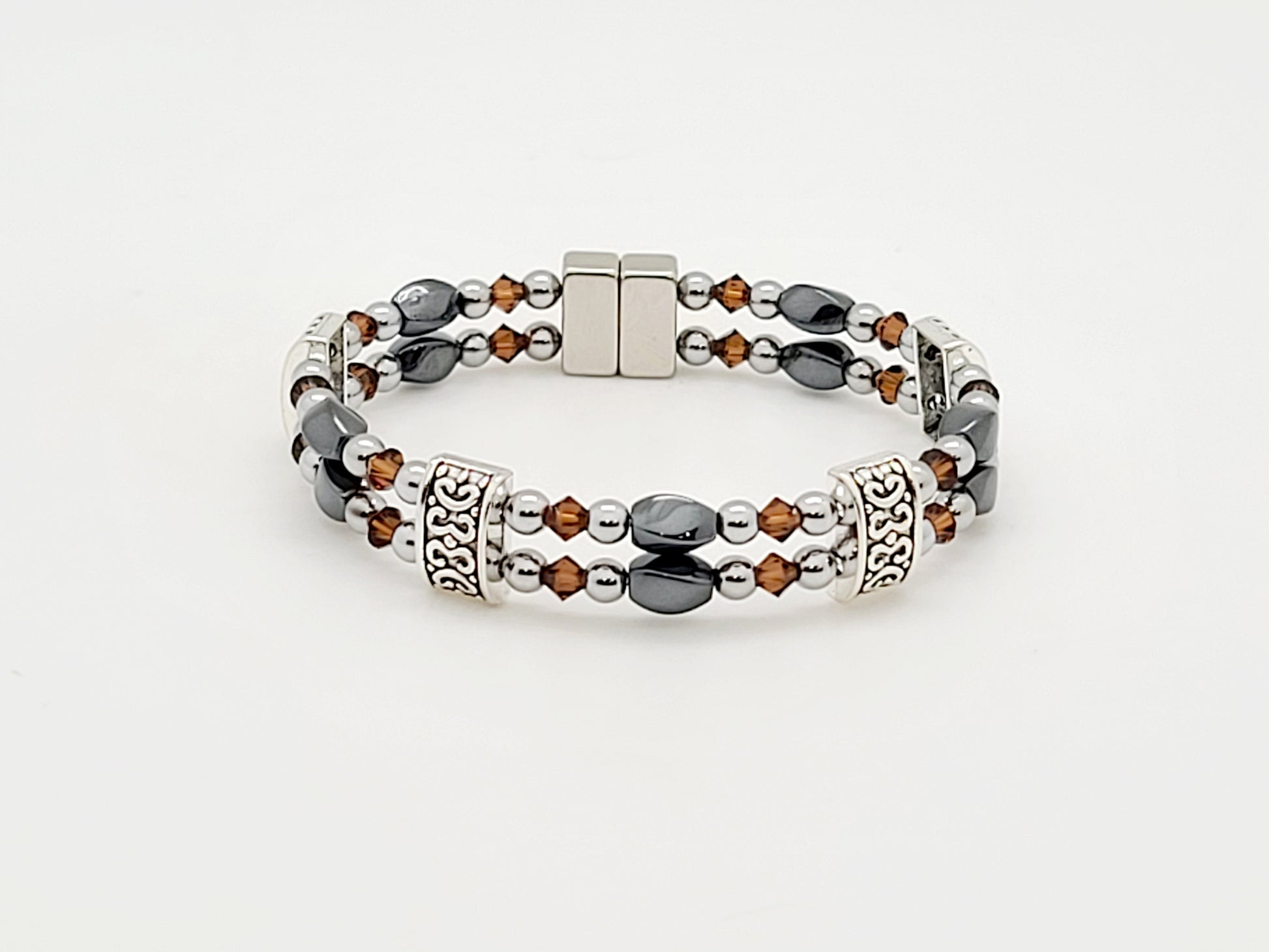 Black Hematite Twist w Smokey Topaz