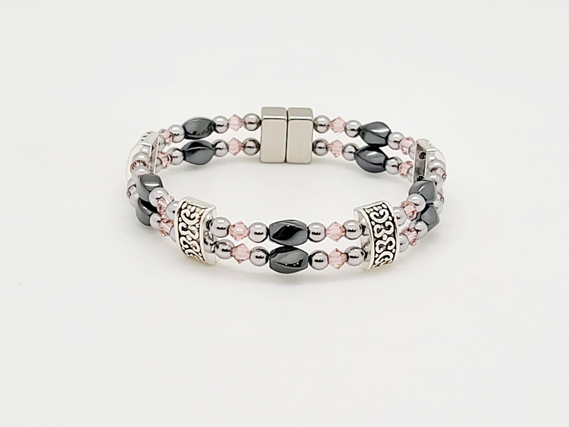 Black Hematite Twist w Vintage Rose