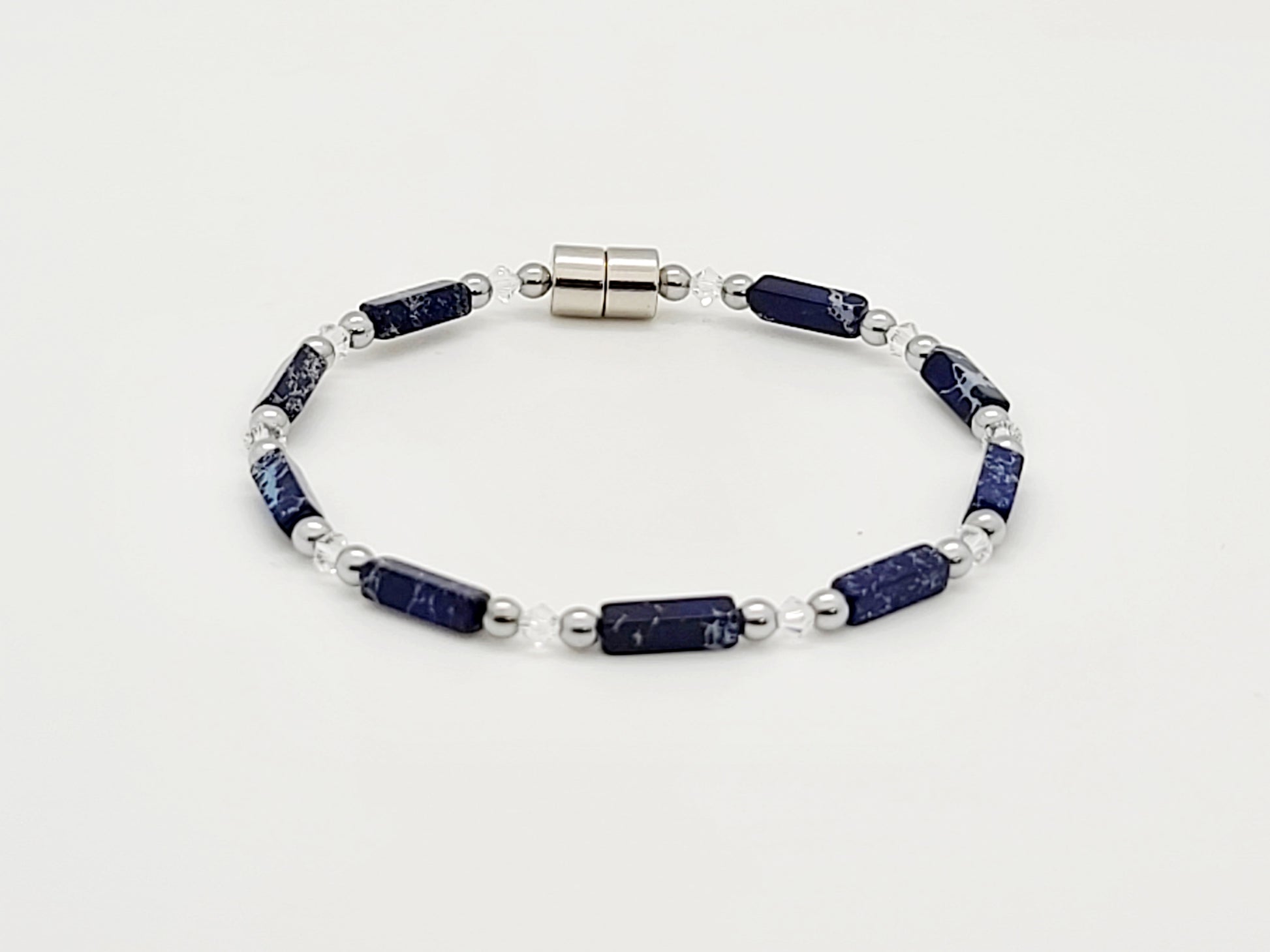 Blue Crackle Rectangle w Crystal