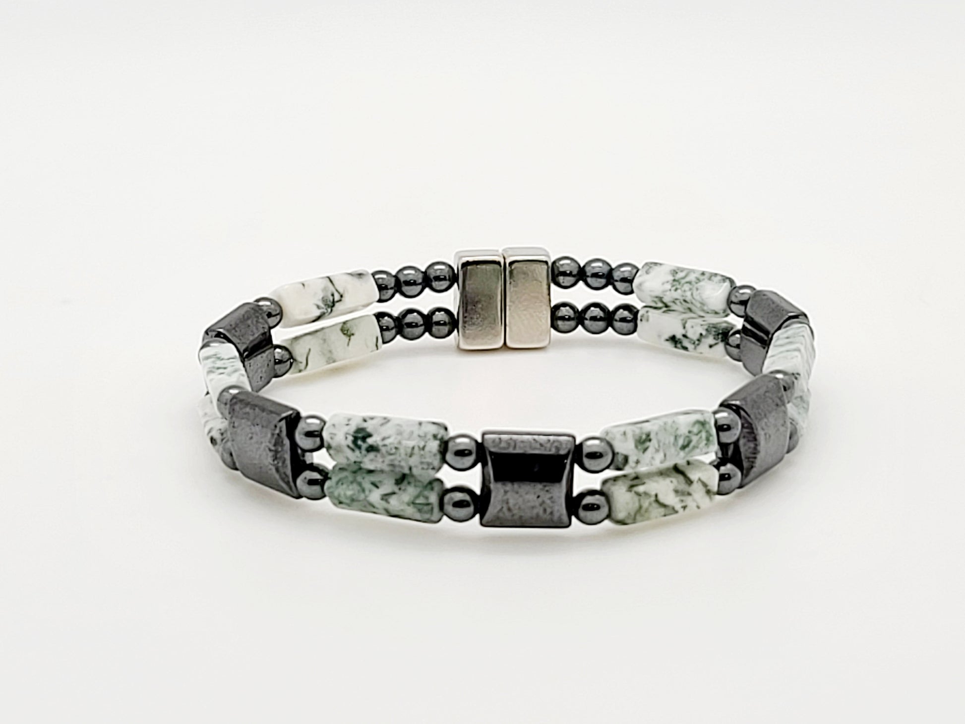 Green Tree Agate w Hematite Square