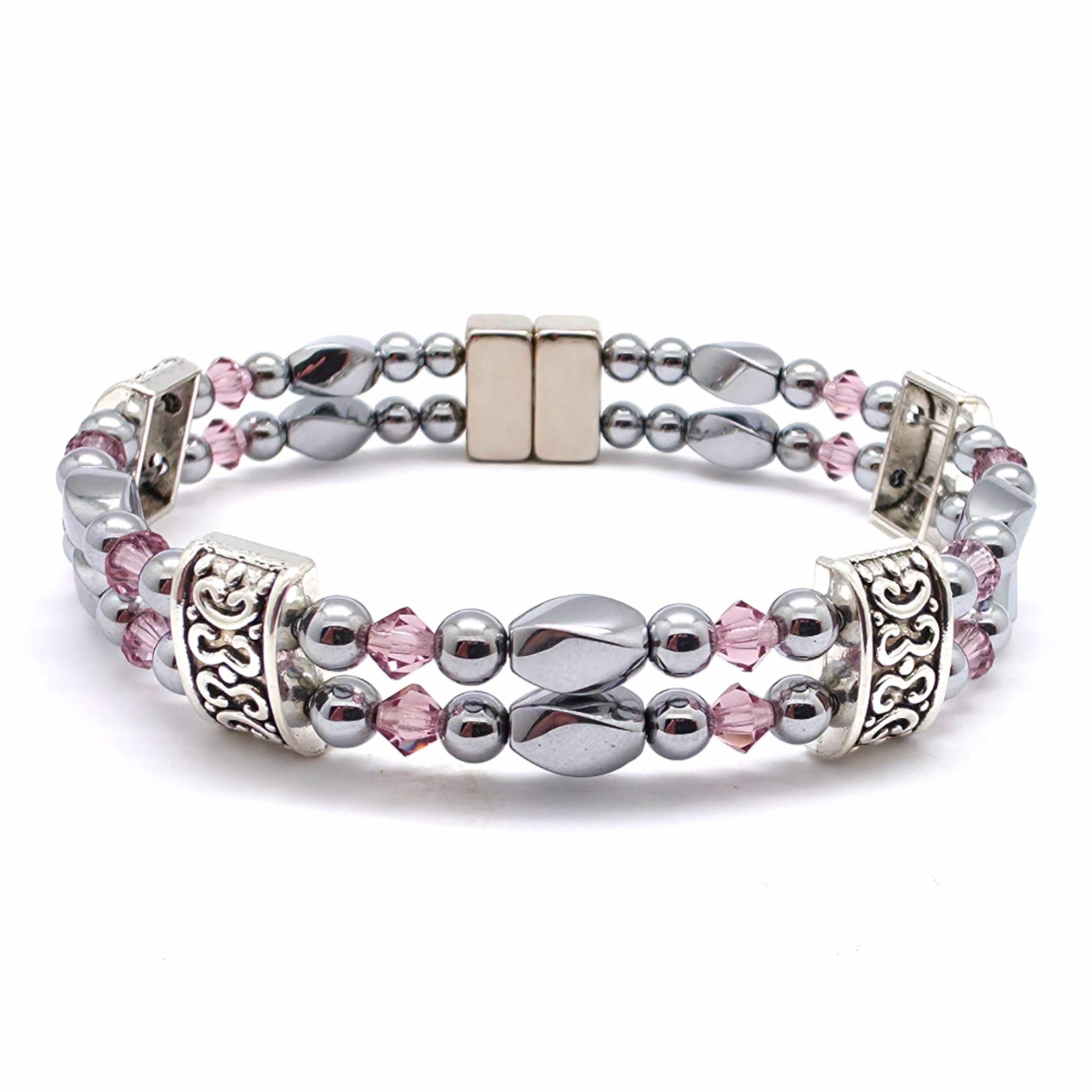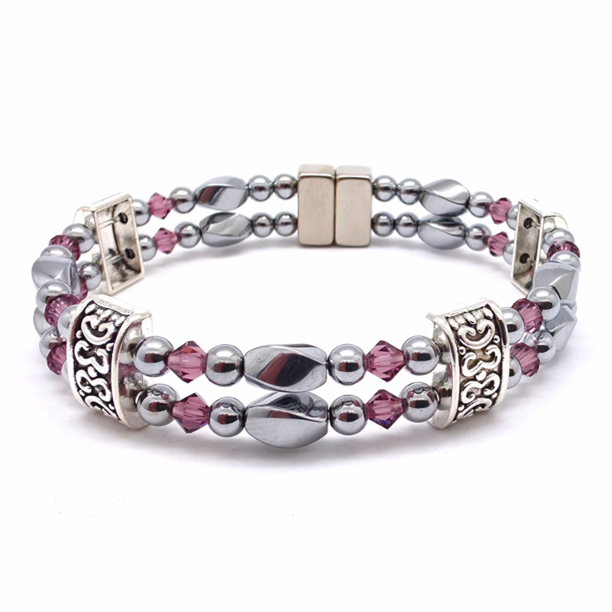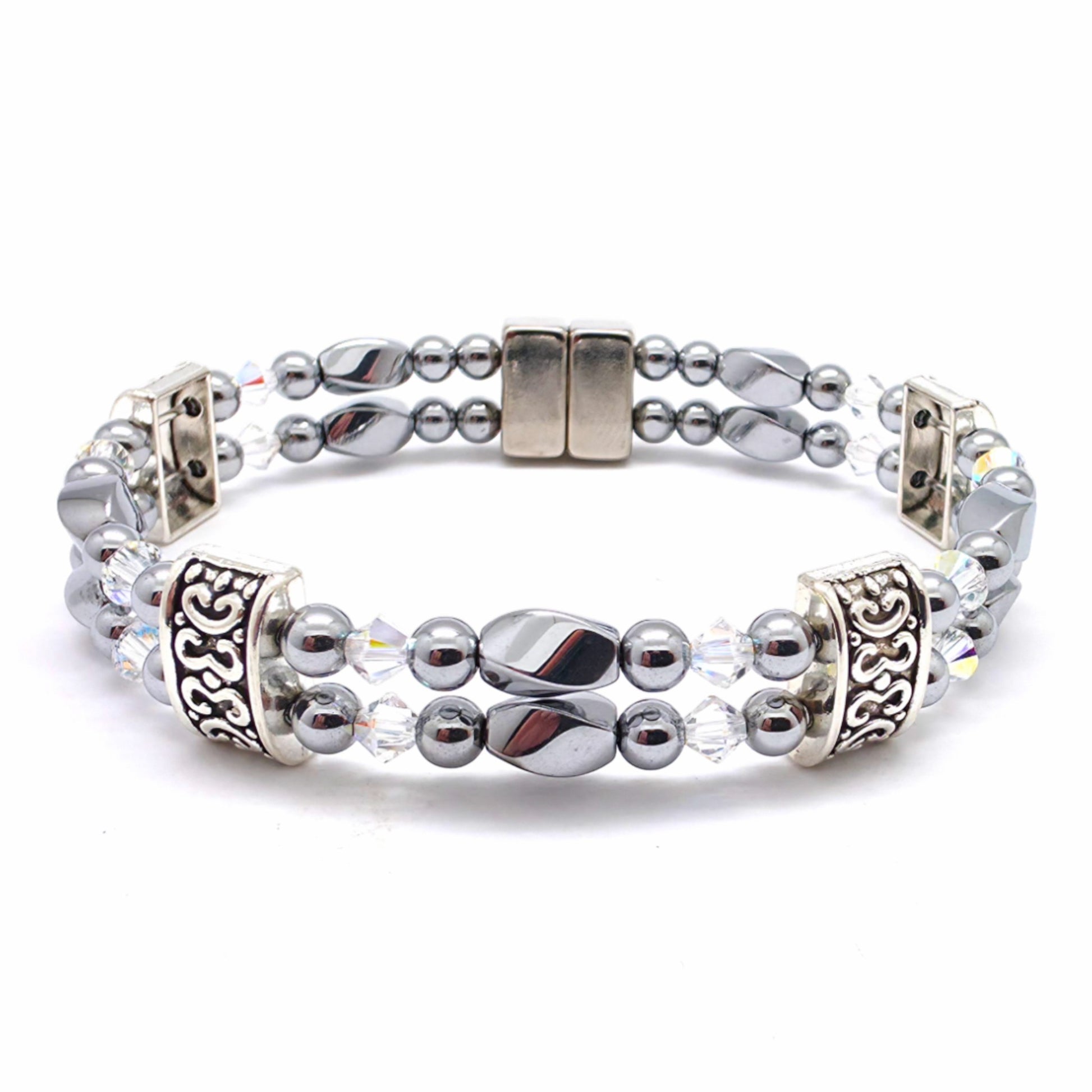Silver Hematite Twist Double w Crystal Option
