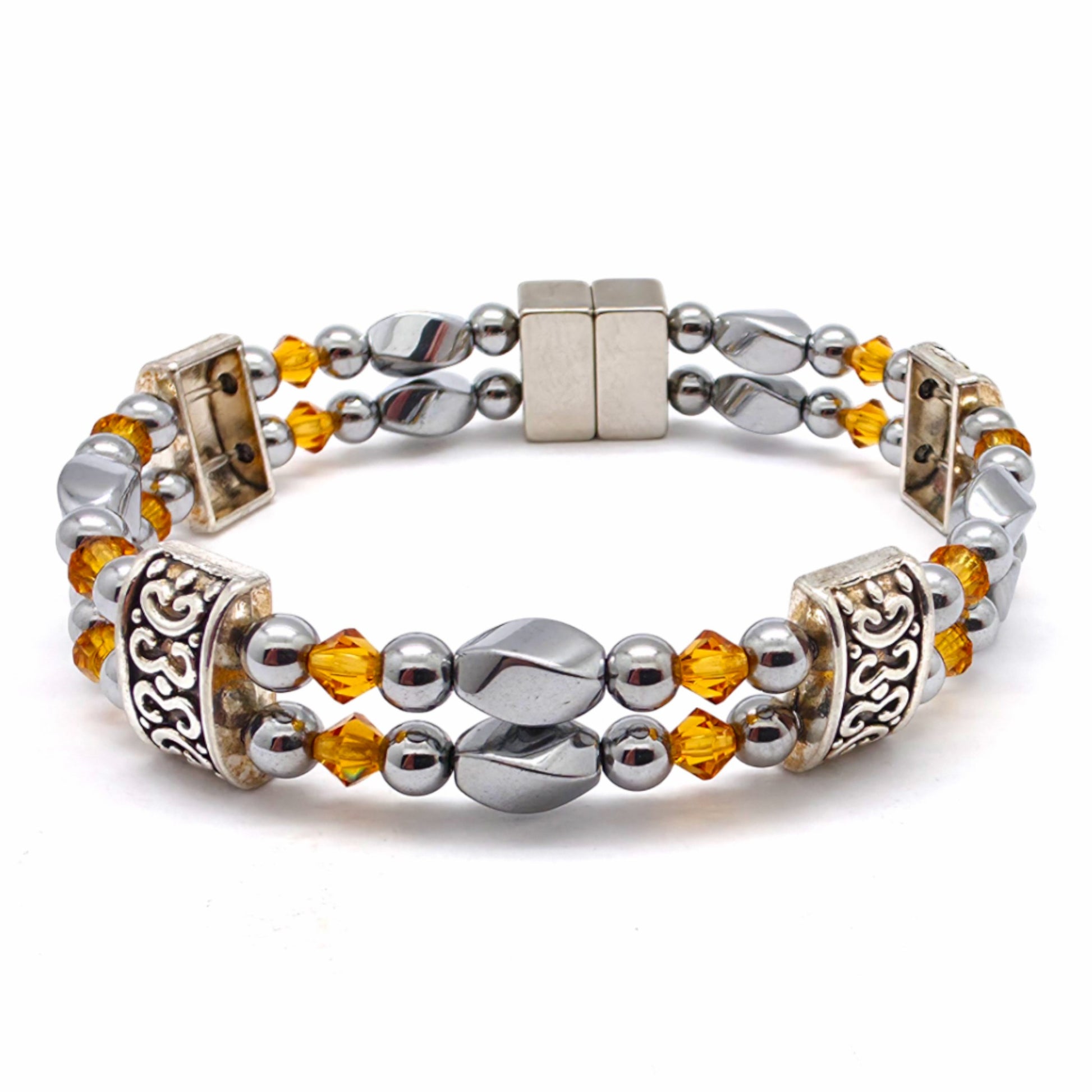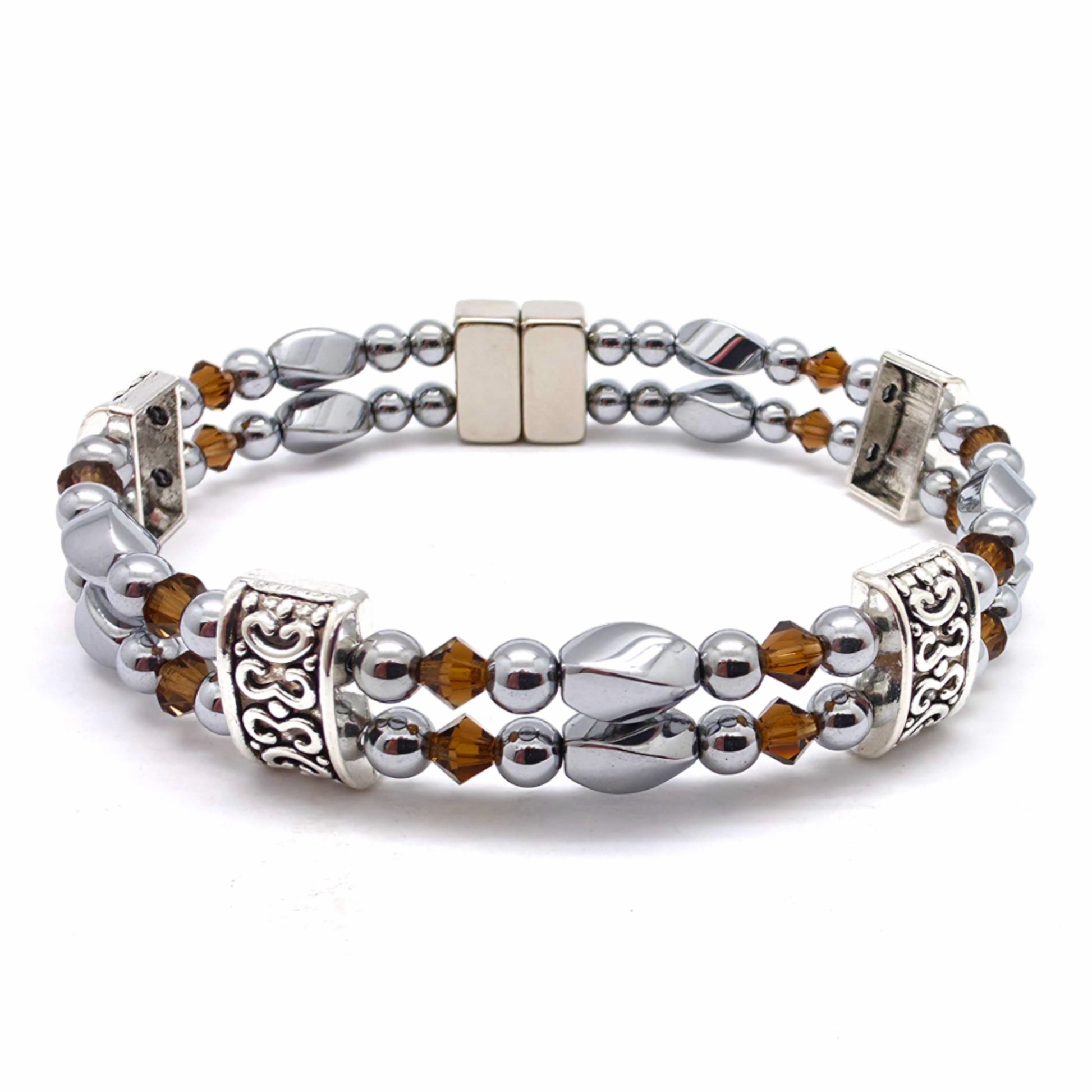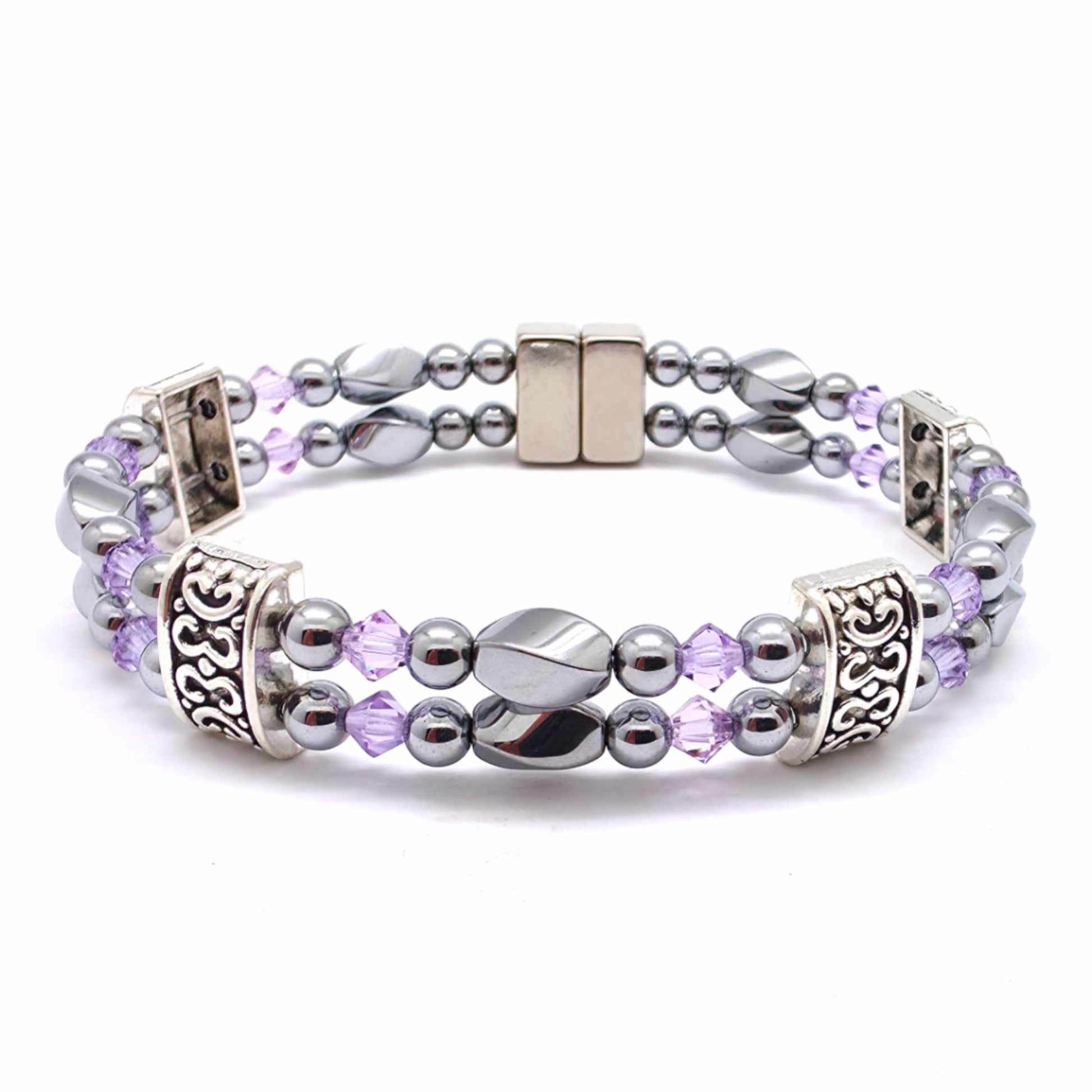 Silver Hematite Twist Double w Crystal Option
