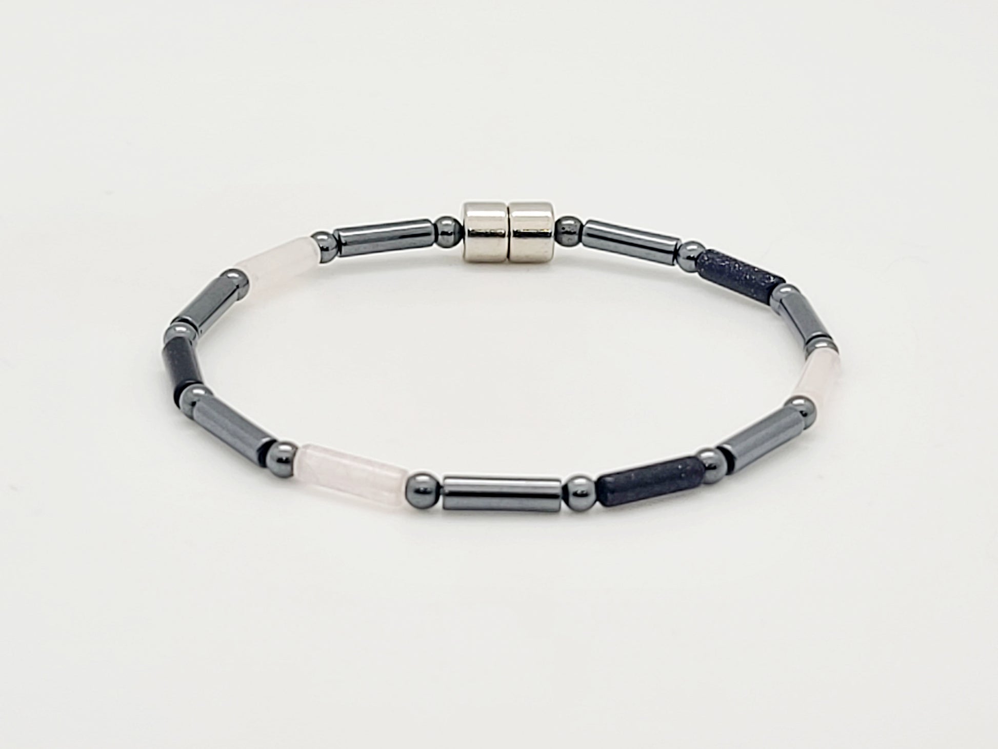 Rose Quartz & Blue Goldstone w Hematite Tube