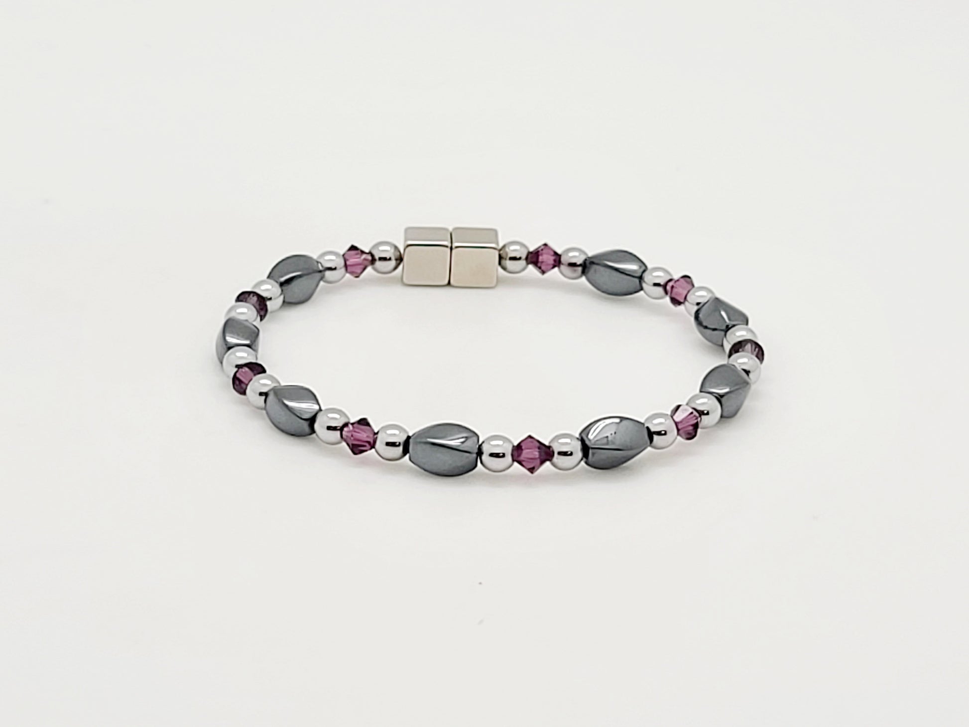 Small Black Hematite Twist w Amethyst
