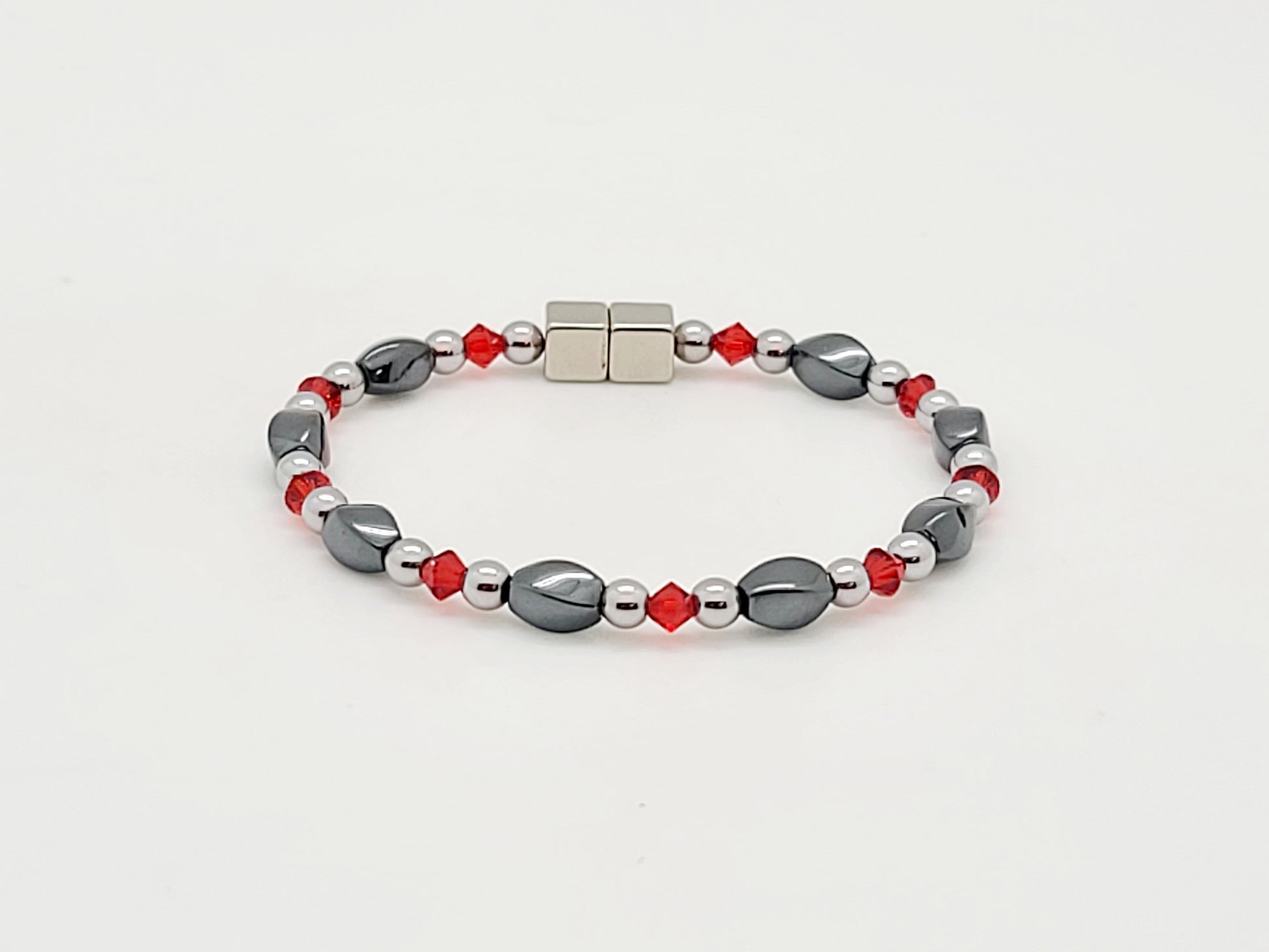 Small Black Hematite Twist w Light Siam