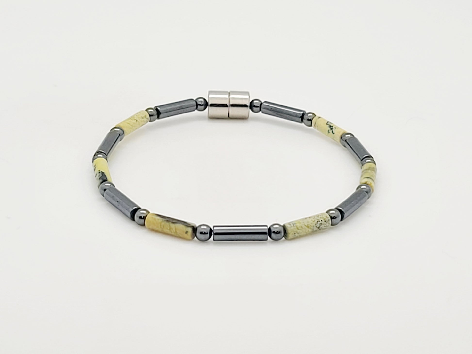 Yellow Turquoise w Hematite Tubes